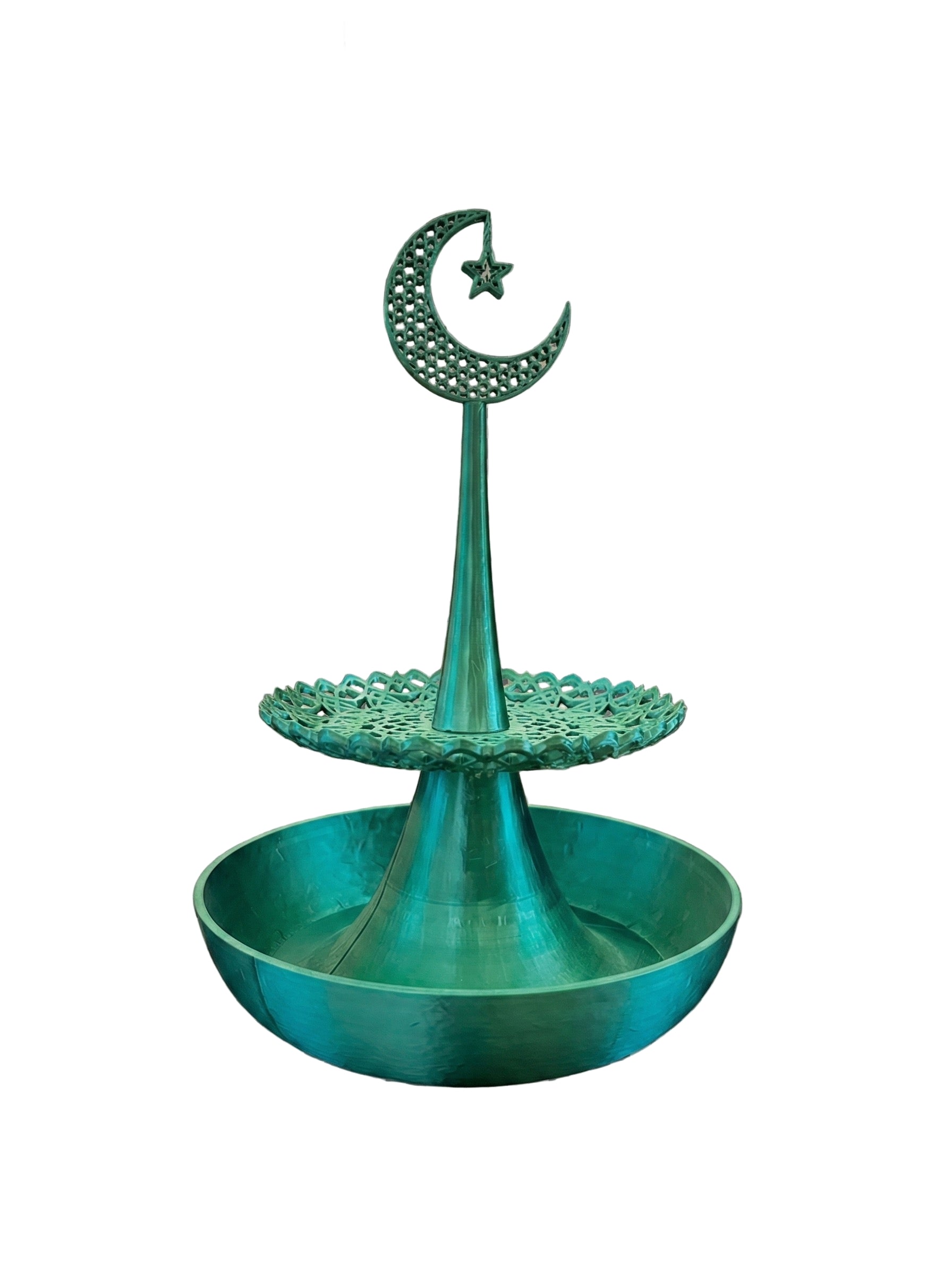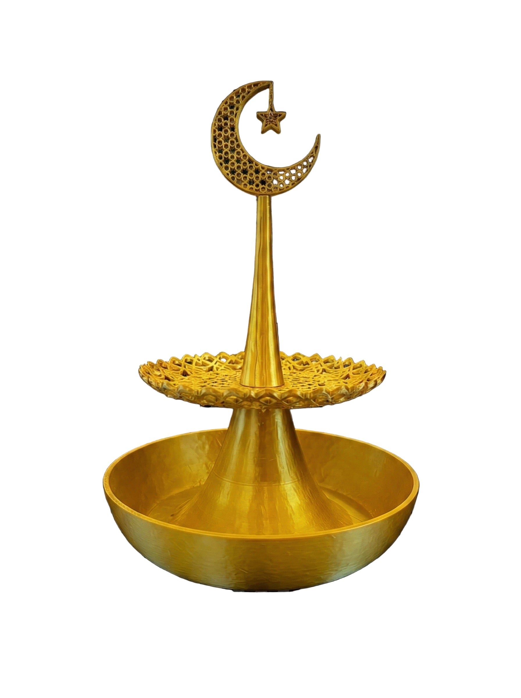 Misafirlerinizi ağırlarken sunumlarınıza zarafet katın! Geleneksel Ay ve Yıldız motifinin modern 3D baskı teknolojisiyle buluştuğu bu özel tasarım hurmalık, sofralarınızın baş köşesinde yerini almaya aday.